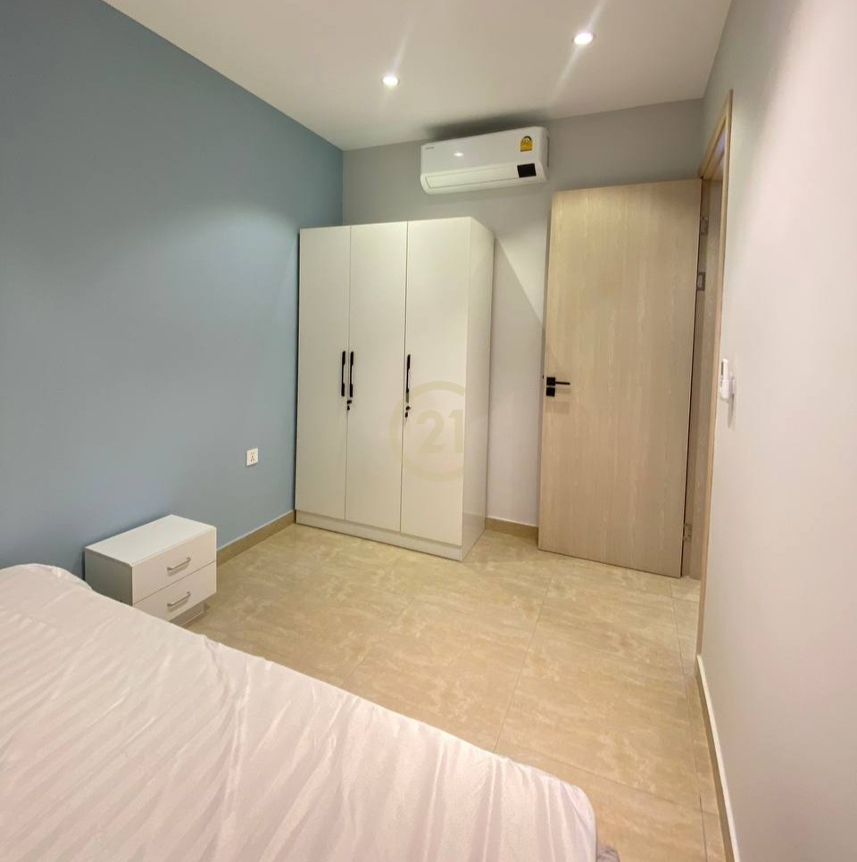 位于金边图尔科克区的两卧室公寓,设施齐全,适合小家庭或上班族,免费使用游泳池和健身房,性价比高。