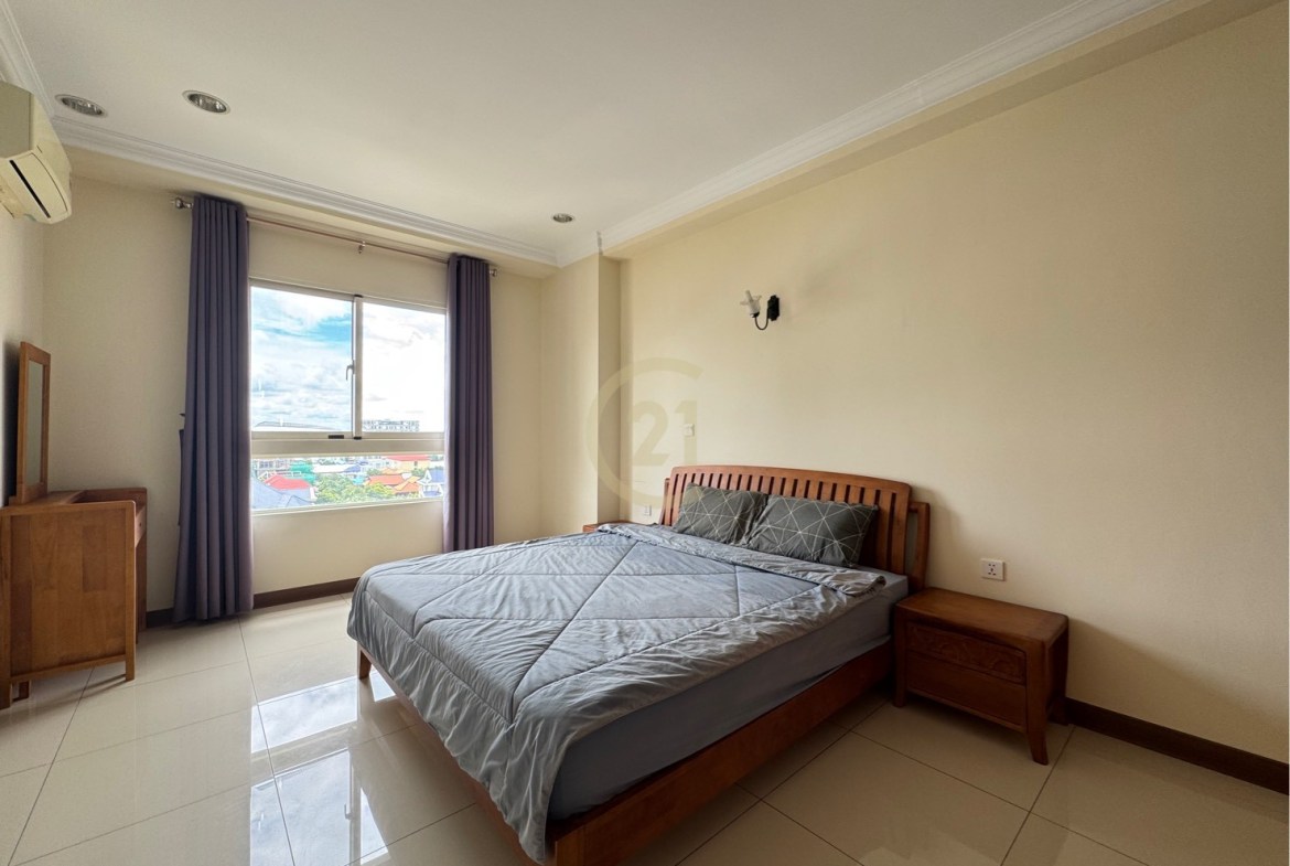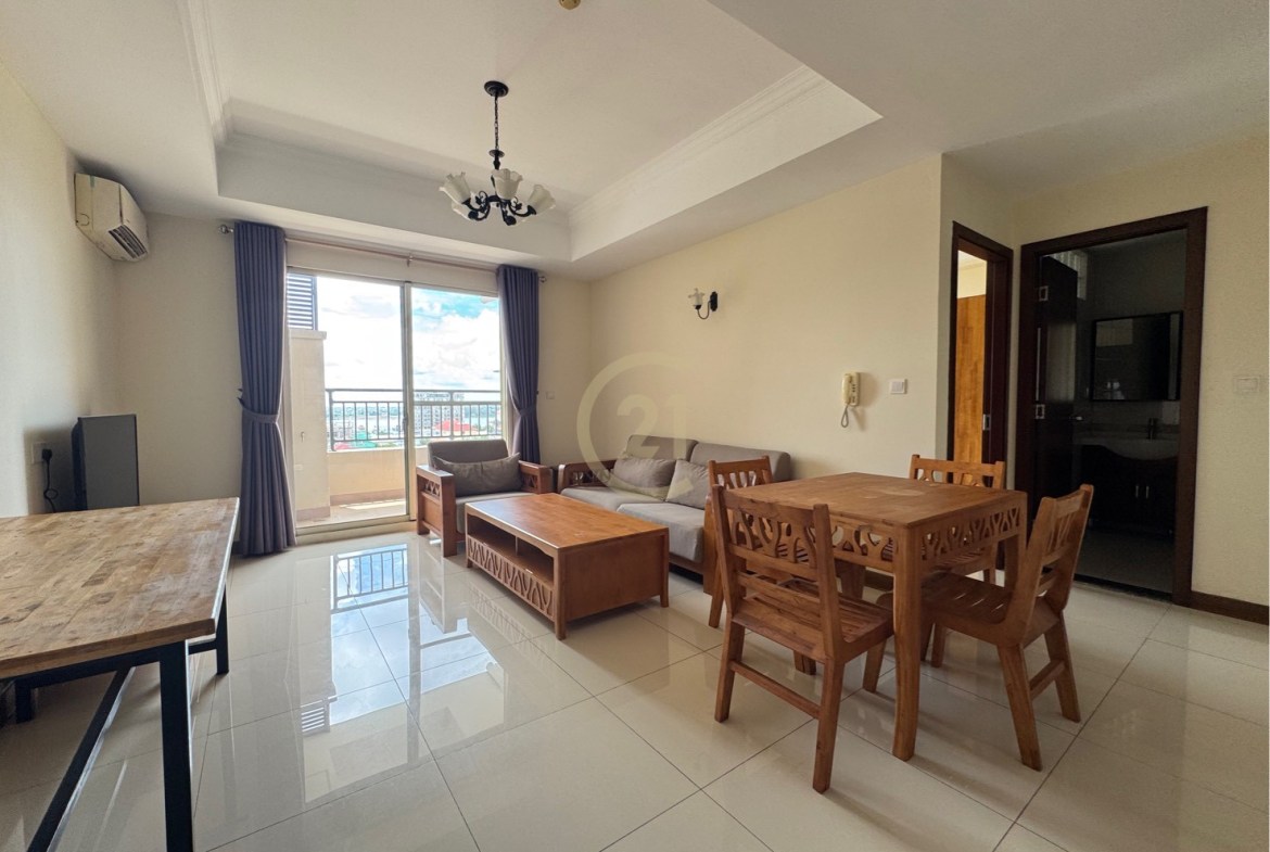 Discover this fully furnished 1-bedroom condo in the peaceful and scenic area of Chroy Changva, Phnom Penh. Ideal for individuals or couples seeking modern living with access to premium facilities like a swimming pool, gym, and 24/7 security – all for just $350/month!